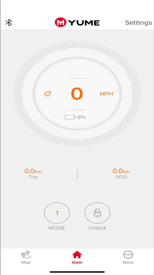 2, through a Bluetooth connection to the YUME vehicle, the App can display vehicle temperature, power, speed, current, current mileage, the mileage and other states.