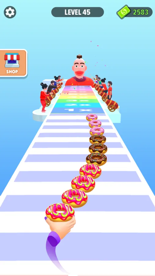 The only thing as good as eating donuts is making them! Are you ready to run and collect some sweet and tasty donuts in donut games? In this app, you get the chance to make up some delicious and colorful doughnut game. Doughnut Games will be eaten at the end of the goal in run race, the person who will eat reacts differently according to your donut maker. The person who will eat reacts differently. When you reach the goal, the longer your donuts, the more money you will get. A super fun doughnut stack and donut running game.