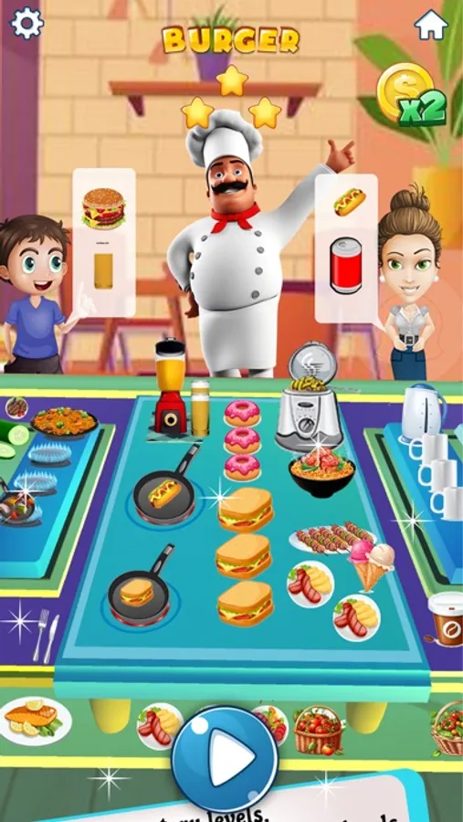 With this fast food serving game get ready to manage restaurants by taking orders from customers, matching meals to them, and collecting payments. There are many levels in this burger chef shop some levels have a story mode, some cooking competitions, and burger cooking challenges levels. These challenges make you restaurantmaster.
