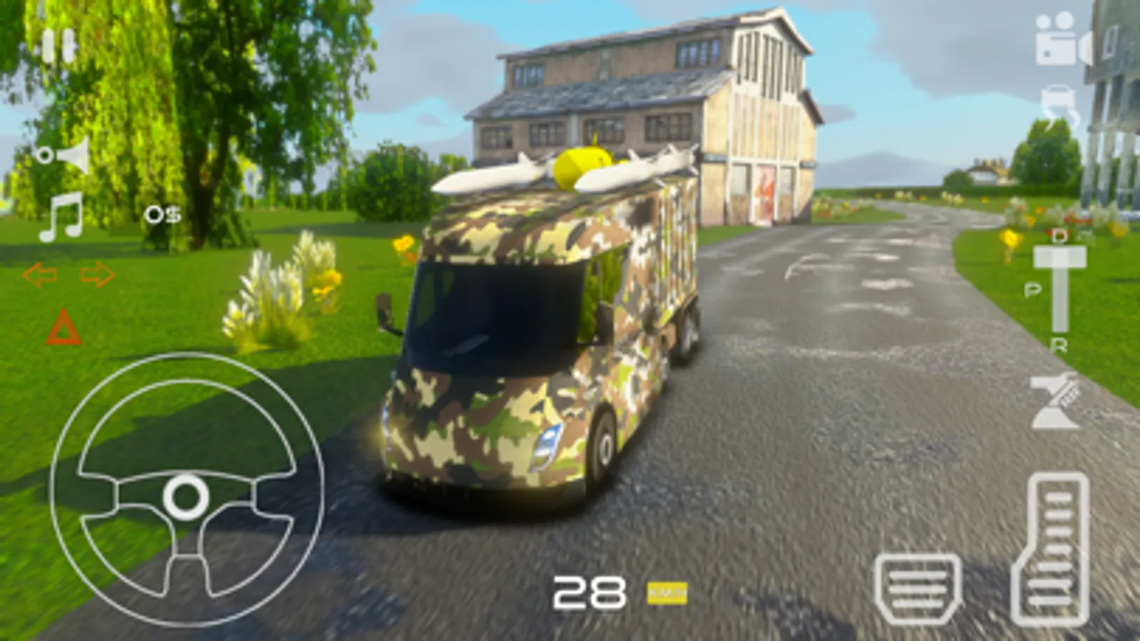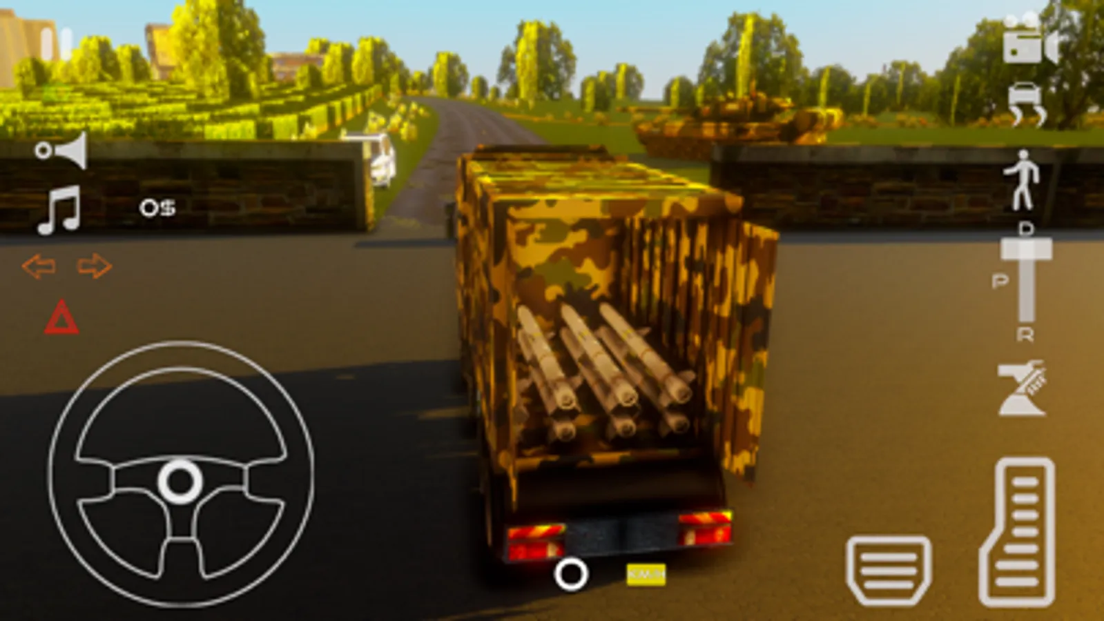 This Army Truck Simulator features 5 unique trucks, camouflage painted and heavy duty.