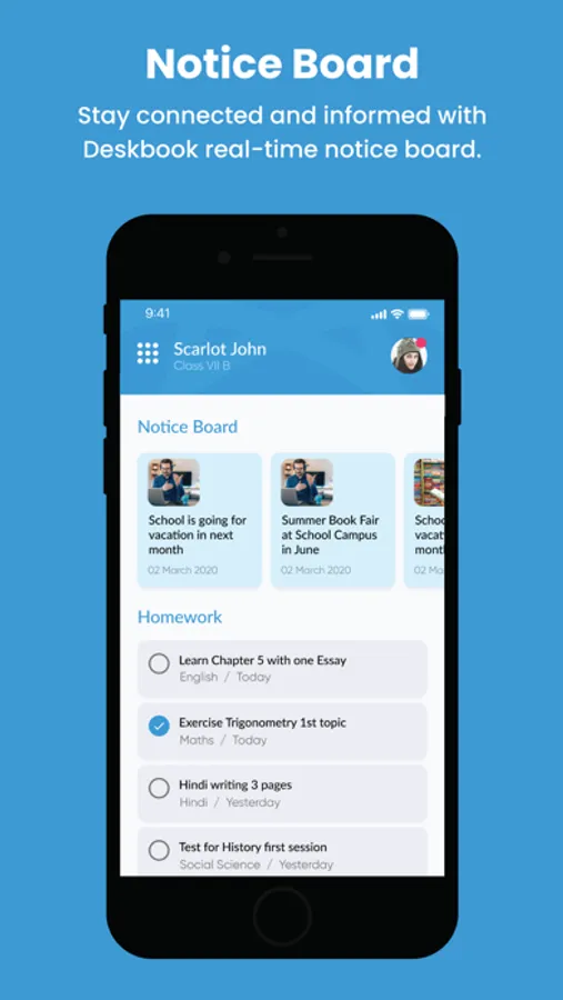 With Deskbook's mobile app, students can stay organized, informed, and connected to their academic progress, all in one place, and on the go.