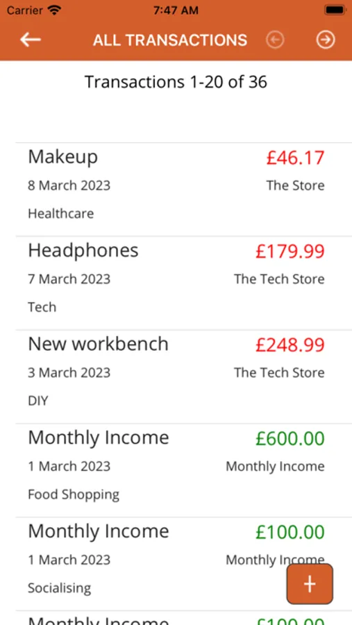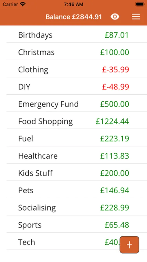Manage your transactions by tagging them to a category. Sere your spending history per category, and see when you dip into negative money.
