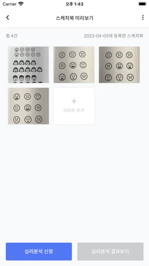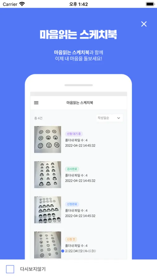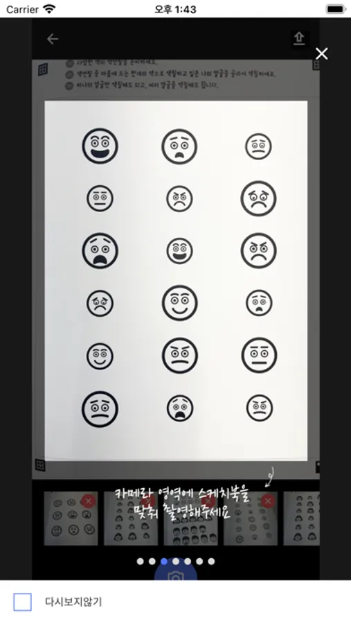 앱을 통해 마음읽는 스케치북을 스캔하고 전송합니다.