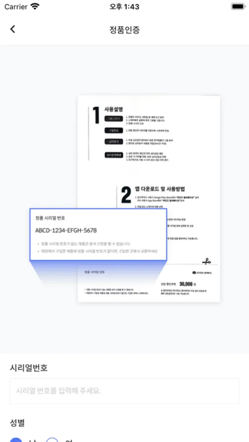 제품에 있는 시리얼 번호를 입력하여 심리 분석 신청을 합니다.