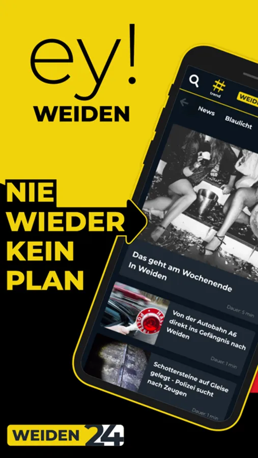 Die Weiden24-App bringt Dir Nachrichten aus Deiner Stadt auf Dein Smartphone. Hier findest Du News, Event-Tipps, Party-Fotos, Sport und Reportagen aus Weiden in der Oberpfalz und dem angrenzenden Landkreis Neustadt an der Waldnaab.