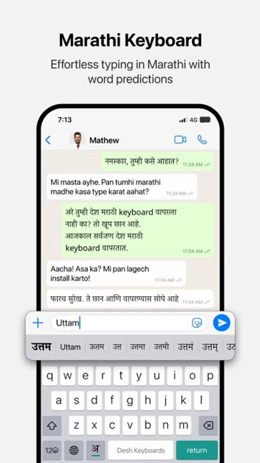 Desh Marathi Keyboard is a keyboard extension that makes Marathi typing super easy: