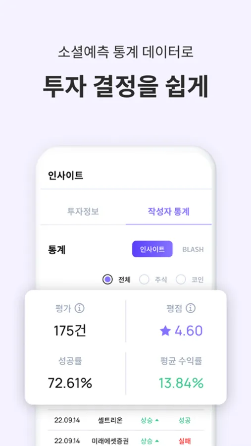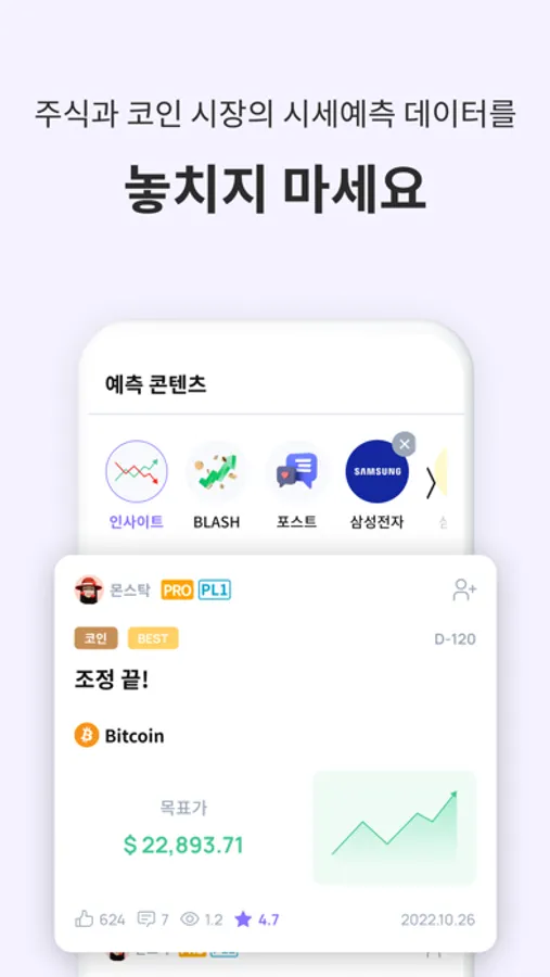 주식 및 코인 시장의 시세 및 소셜 예측 정보 제공