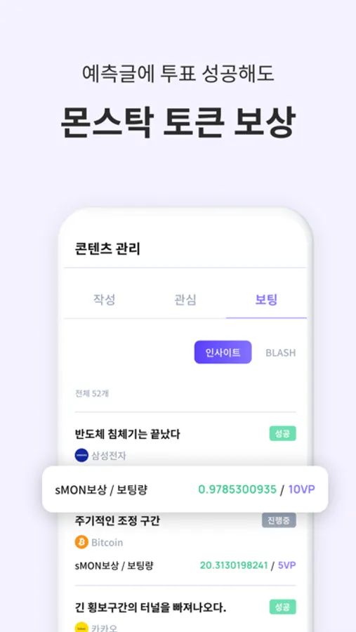 예측 콘텐츠 작성자와 투표 성공한 사람에게 보상이 주어지므로, 투자에 더욱 열중하게 됩니다.