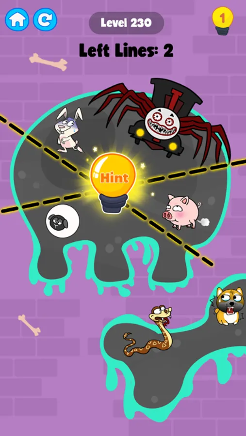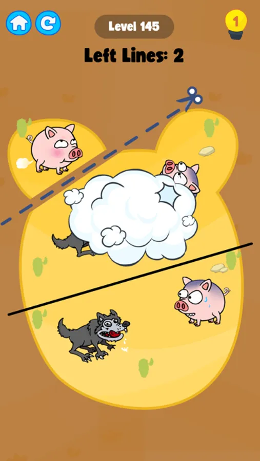 Welcome to the ultimate cut-to-save puzzle game, where your mission is to save the most adorable creatures! Use your brainpower and creativity to draw a limited number of straight lines that will cut the land and separate the weak from the evil.