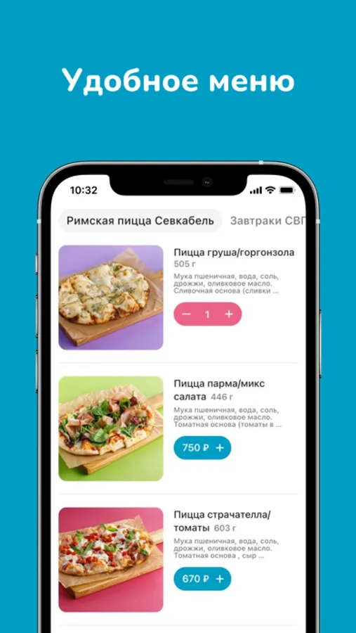 Меню ресторана составлено из всем понятных и привычных блюд. Здесь можно заказать римскую пиццу, домашнюю пасту, настоящий борщ, сочный стейк и свежевыпеченный хлеб. Для маленьких посетителей есть детское меню. А меню с десертами по количеству блюд не уступает основному — это круассаны, эклеры, шу, тарты, чизкейки.
