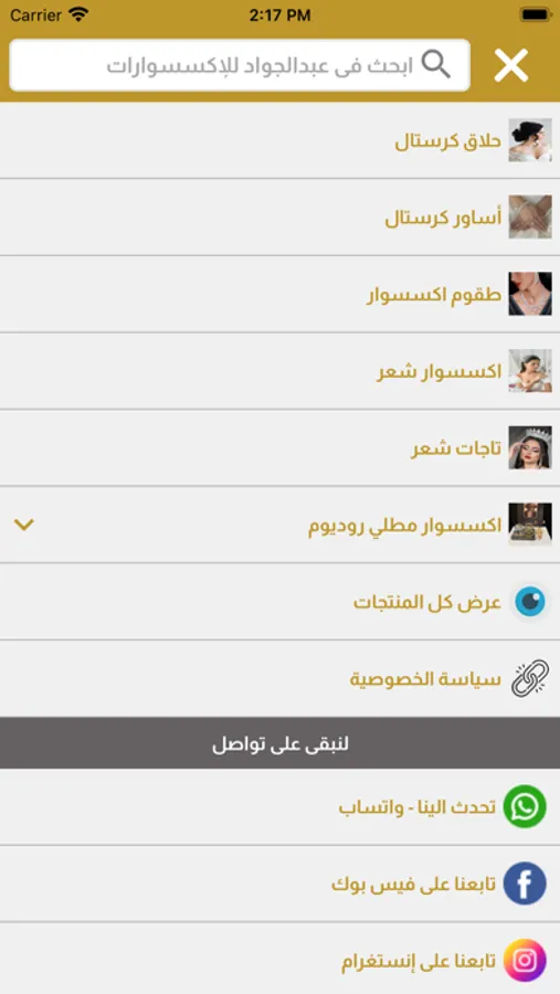 يوفر لكم تطبيق عبدالجواد للإكسسوارات تشكيلة واسعة من الاكسسوارات بتصاميم حديثة و عصرية تتماشى مع مناسباتكم .