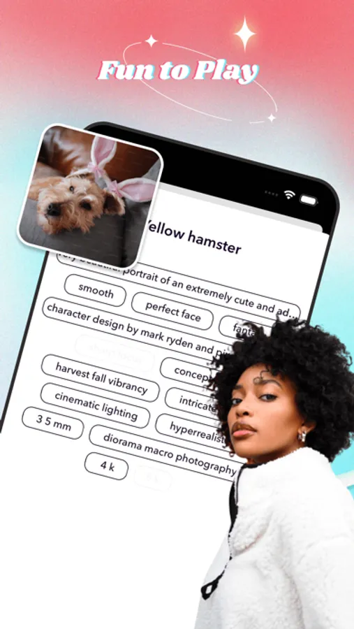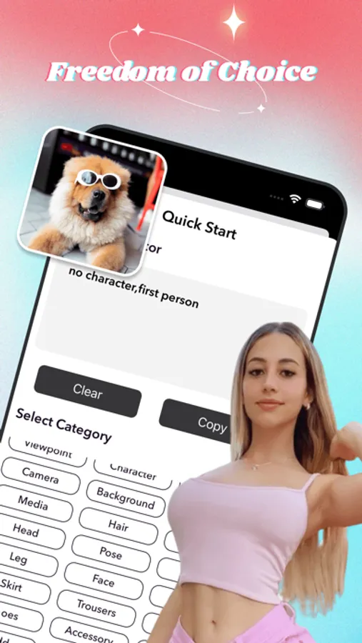 Pembo is a creative app that allows you to easily generate AI images with your favorite tags to create a variety of images. You can freely mix and match from the up to 20 hashtag categories we provide, such as perspective, frame, shot, background, style, media, hair, color, head, pose, hand, leg, face, dress, skirt, pants, socks, shoes, accessories, and more. You can then copy this set of tags to go anywhere you want, such as social media, blogs, websites, etc., to generate an AI image based on the tags.