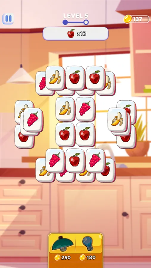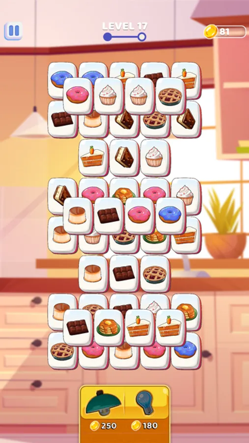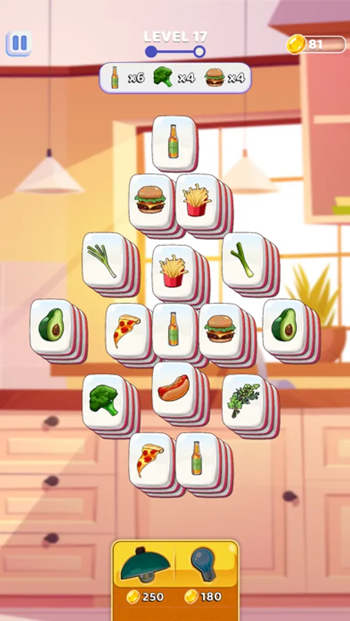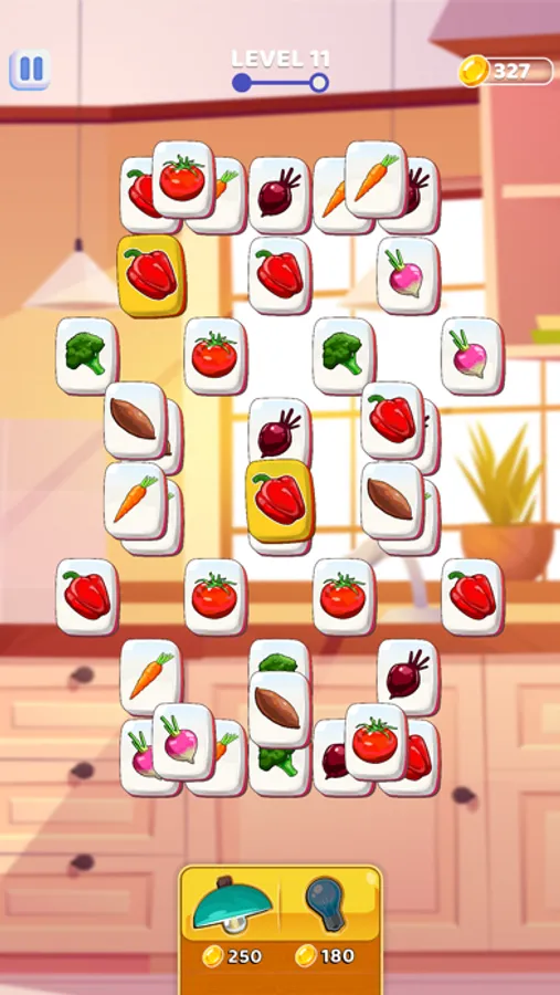 Welcome to Mahjong Chef, the ultimate tile-matching puzzle game! In this game, you will embark on a culinary journey as you solve challenging Mahjong puzzles to become the ultimate chef. There are two types of levels in Mahjong Chef: Grid Cleaning Levels and Objective-Based Levels. In Grid Cleaning Levels, you will need to clean the grid by pairing out all the tiles. In Objective-Based Levels, you will be given a specific objective and you will need to pair out the tiles given in the objective to complete the level.