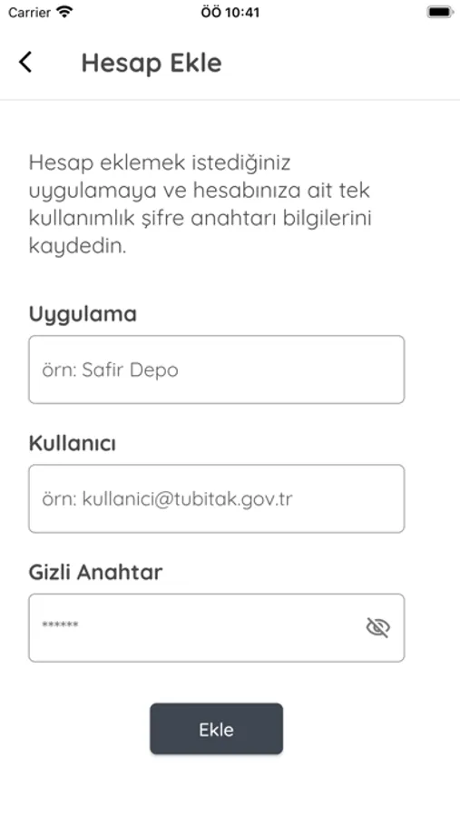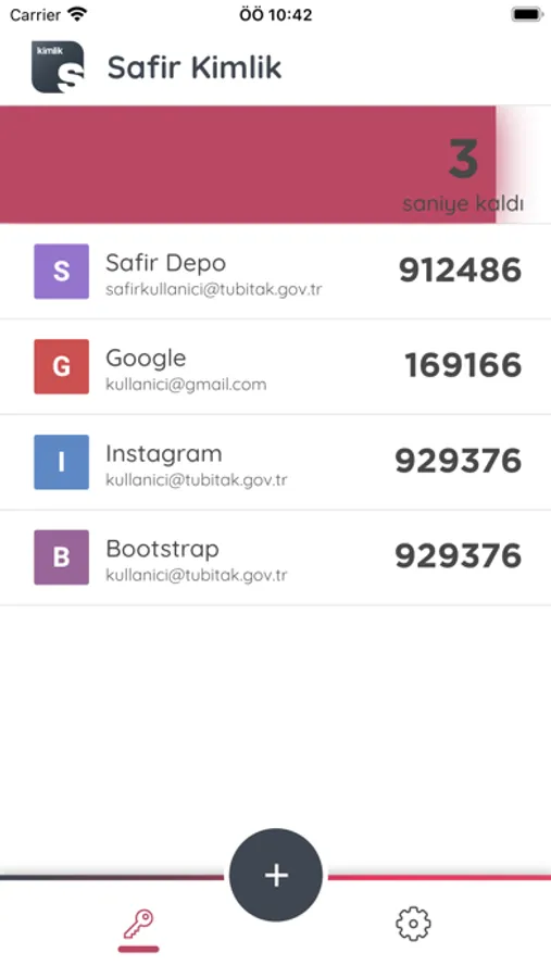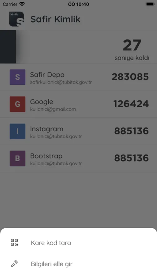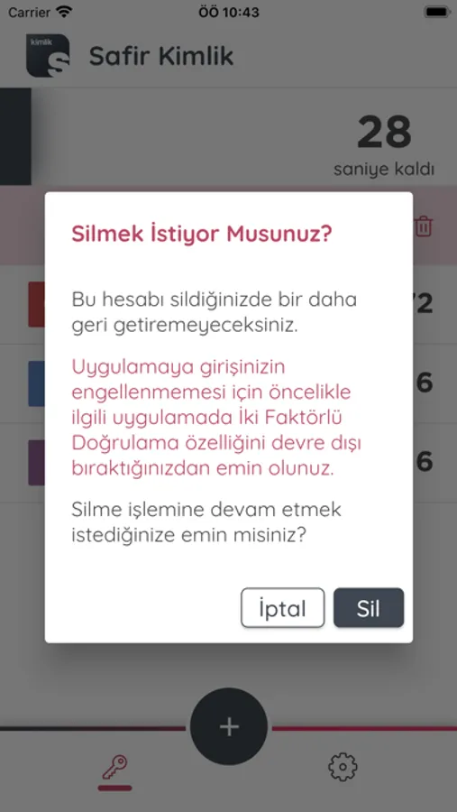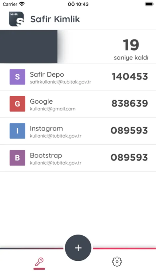 Kullanmakta olduğunuz herhangi bir uygulamaya giriş yaparken, “İki Aşamalı Kimlik Doğrulama”yı aktive ettiğiniz durumlarda ihtiyaç duyacağınız tek kullanımlık şifreleri oluşturmak, bu şifreleri oluşturmak için gereken uygulama anahtarlarını cihazınızda güvenle depolamak için Safir Kimlik uygulamasını kullanabilirsiniz.