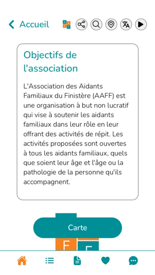 L'Association des Aidants Familiaux du Finistère (AAFF) est une organisation à but non lucratif qui vise à soutenir les aidants familiaux dans leur rôle en leur offrant des activités de répit. Les activités proposées sont ouvertes à tous les aidants familiaux, quels que soient leur âge et l'âge ou la pathologie de la personne qu'ils accompagnent.