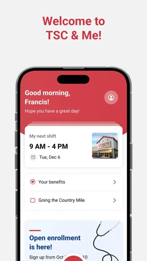 Introducing TSC&Me, the one app designed for and developed from feedback from Team Members. Team Members must be enrolled with multi factor authentication to access internal features. With the TSC&Me app Team Members will have the ability to view their schedule, benefits and total rewards.