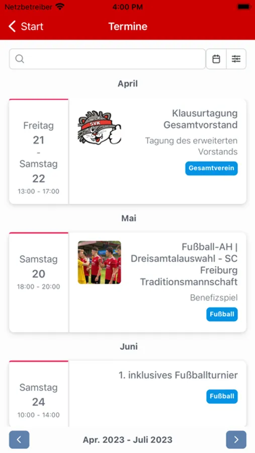 Ab sofort sind nicht nur unsere Mitglieder sondern auch der Verein mobil. In unserer eigenen App könnt ihr euch unter anderem über Aktuelles aus dem Verein informieren, Sportangebote suchen, Termine einsehen und Euch untereinander Organisieren. Der Sportverein Kirchzarten e.V. bietet mit dieser App interessante Einblicke für Mitglieder und Interessierte.