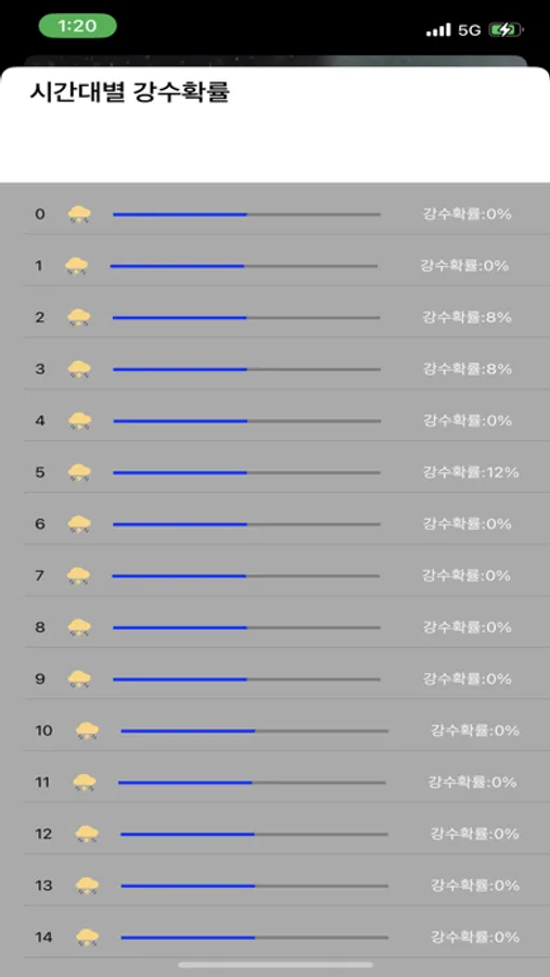 -Apple Co. 에서 제공하는 Weatherkit 현재지역 24시간 강수확률을 통해 언제 우산을 챙겨야할지 미리 대비할 수 있어요.
