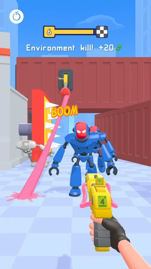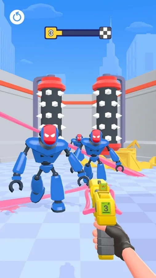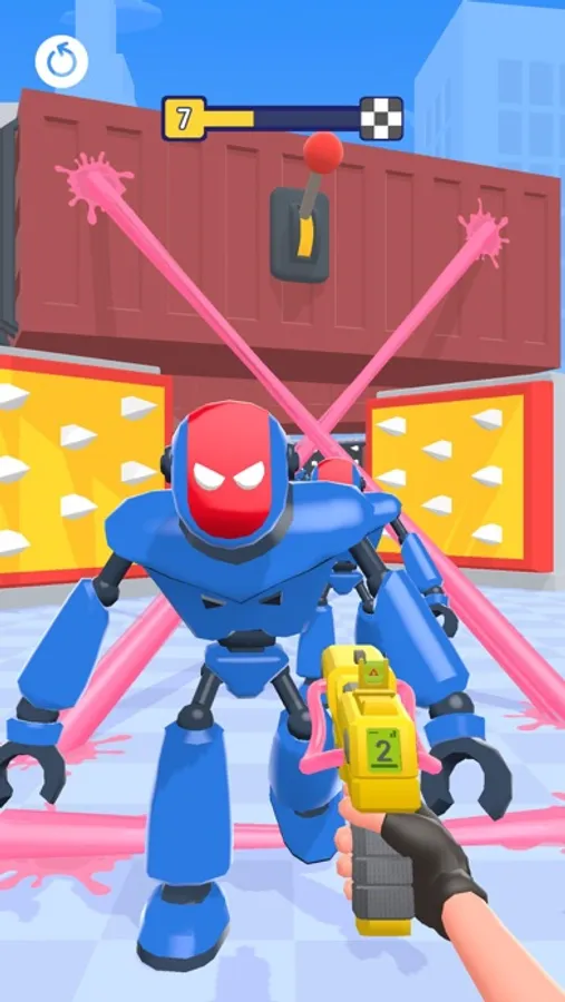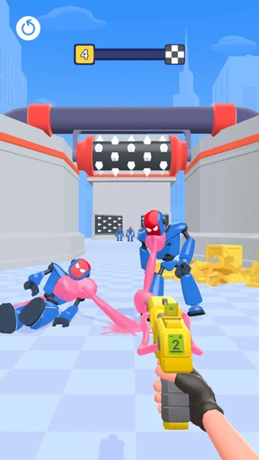 Unlike in other gun shooting games, you’ll get the most powerful weapons of all galaxies! Take a blaster that shoots gum or a pistol with ropes instead of bullets in our top war battle game. These futuristic shooting guns will help tie the robots to hurdles and tear them all down!