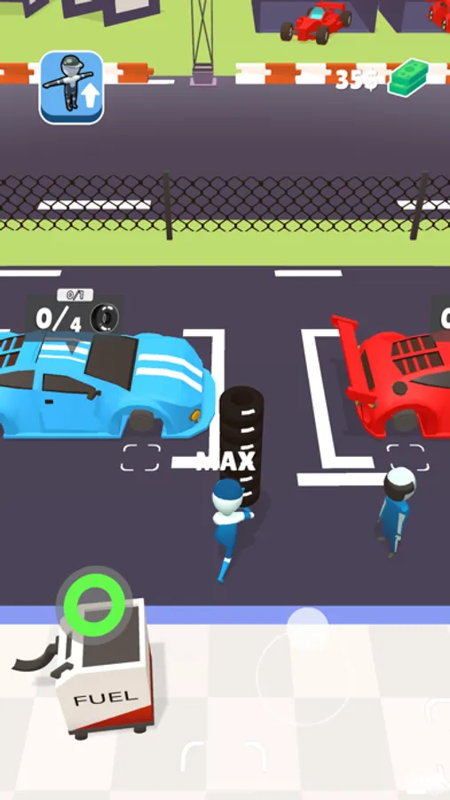 Manage team of a racing technicians! Make the fastest pit stops. Carry parts, fill up cars, help your team win the race!