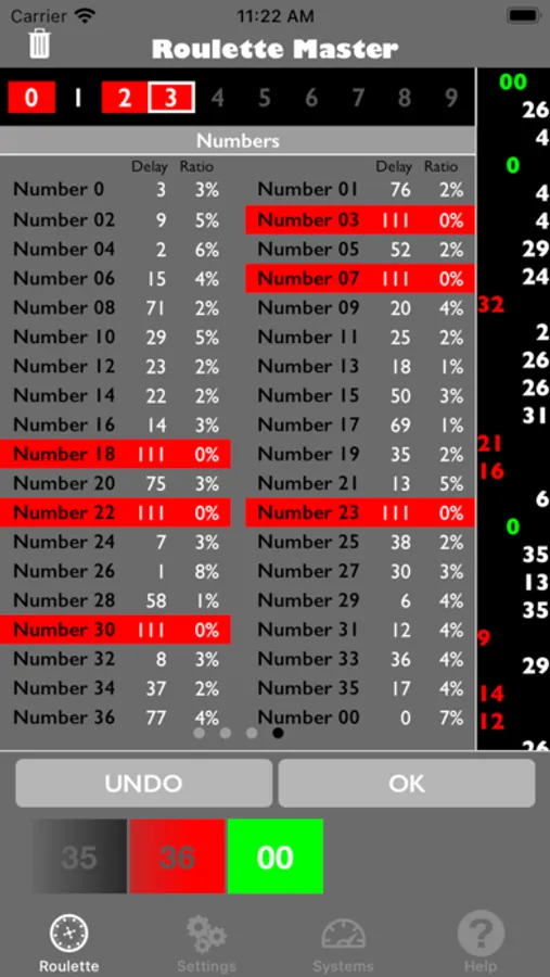 Roulette Master! is an application that assists you in targeting sleepers (looks for roulette bets that don’t appear for a long number of spins). The app allows defining a general alert threshold that is customized for each kind of bet. Every time that a particular threshold is exceeded, Roulette Master! alerts the user, indicating that is a good time to start betting. Bets that are available in this version are: