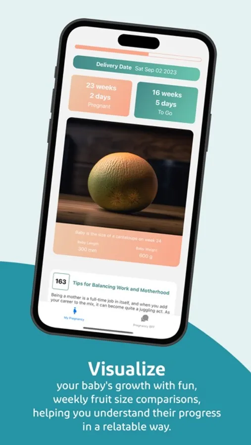 - Fruit Size Comparison: Visualize your baby's growth with fun, weekly fruit size comparisons, helping you understand their progress in a relatable way.