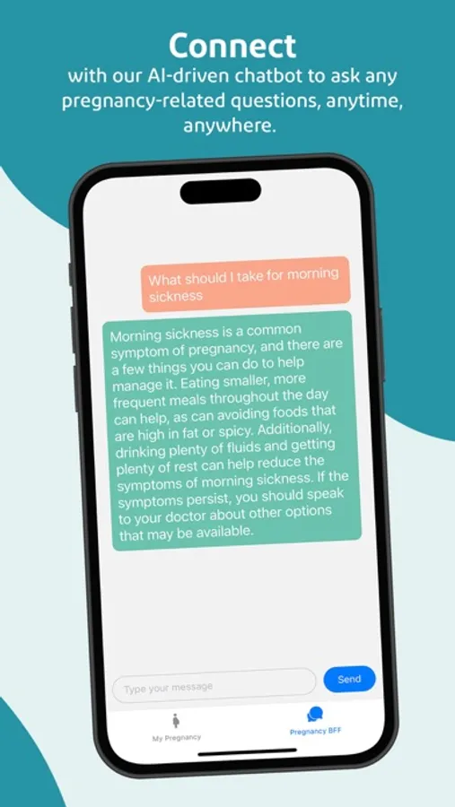 - PregnancyBFF Chat: Connect with our AI-driven chatbot to ask any pregnancy-related questions, anytime, anywhere. Get personalized advice, guidance, and support throughout your journey.