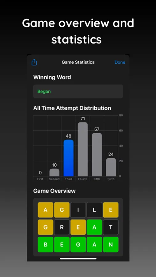2) Unlimited Practice: Enhance your word-guessing skills without limitations in the Unlimited Practice mode. Play as many times as you like, experimenting with different strategies and combinations to improve your accuracy. Keep track of your personal statistics and witness your growth over time. Challenge yourself endlessly and become a true master of words!