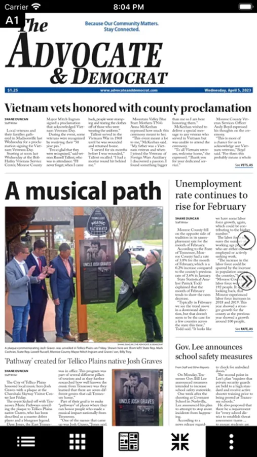 This is a digital replica of The Advocate & Democrat. This app is part of your all access membership. If you have questions about using the app please contact us at customercare@apgenc.com or call (423) 337-7101