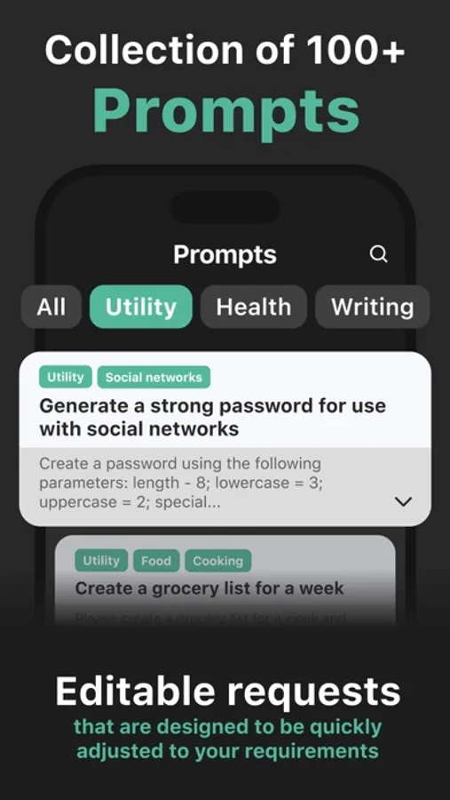 4. Get ready-to-use prompts and request ideas from our large Prompt library. 100+ units in 20 categories.