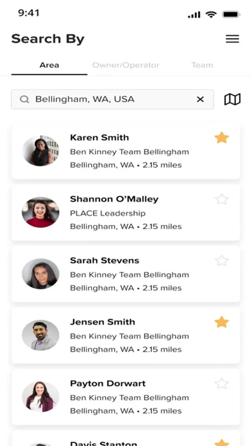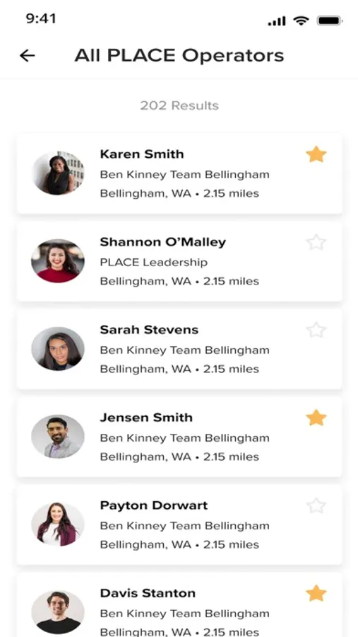 PLACE real estate agents can search by area, team name or Operator name to find PLACE referral partners around the United States and Canada. Users can choose from a map or list view for their search experience, and add favorites as a shortcut to finding people they regularly do business with.