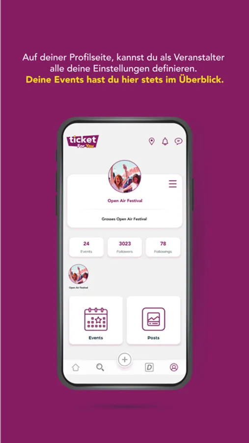 TicketForYou ist eine innovative APP die Veranstalter und Interessenten gleichermaßen verbindet. Du bist in einer Stadt und weisst nicht welches Event du besuchen sollst? Mit TicketForYou findest du schnell ein passendes Event. Einfach Location definieren, und interessante Events im Feed anzeigen lassen, einfach und bequem Tickets kaufen.