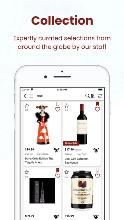 With the App you can browse for the wines & spirits available in the store, and also order a delivery or pickup.