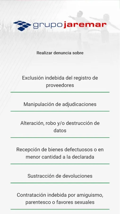 Grupo Jaremar has put at your disposal an Ethics Line where you can report anomalies within your organization anonymously. You can report issues such as mismanagement, fraud, discrimination or some other issue that you consider relevant.