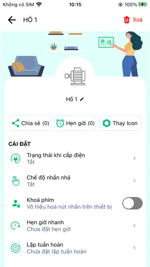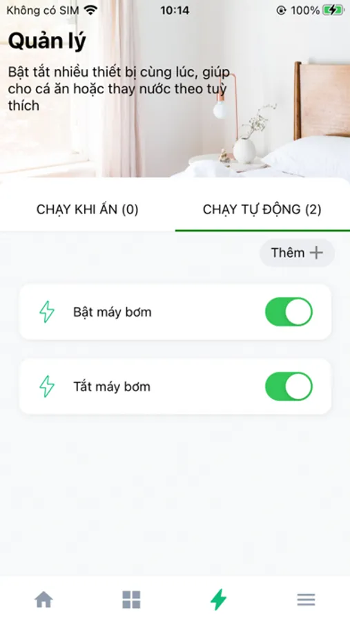 Ứng dụng điều khiển - tự động hoá các thiết bị liên quan đến hồ cá như: đèn, đèn led, công tắc, máy bơm nước, máy tạo oxy ...