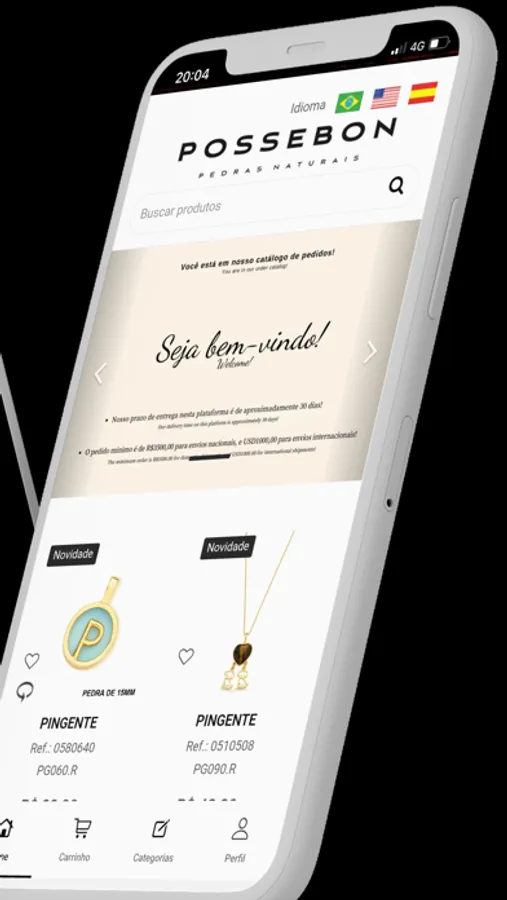 A Possebon Joias produz peças exclusivas de alta qualidade para lojistas, atacadistas e revendedores, incluindo joias folheadas e prata 925 com pedras naturais. Agora, suas compras são possíveis via celular, com descontos exclusivos e notificações de lançamentos.