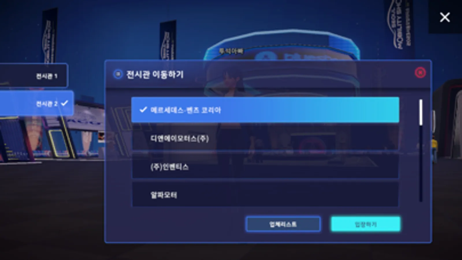 A mobile app that implements the Seoul Mobility Show as a metaverse and allows visitors to experience various exhibition contents such as various new cars and future mobility in a 3D virtual space.