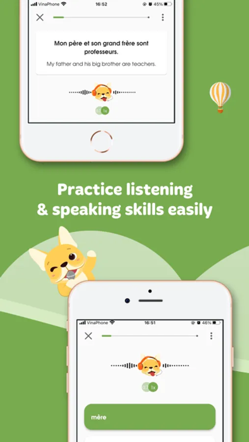 • Confident French communication: practice pronunciation, practice speaking through practice exercises