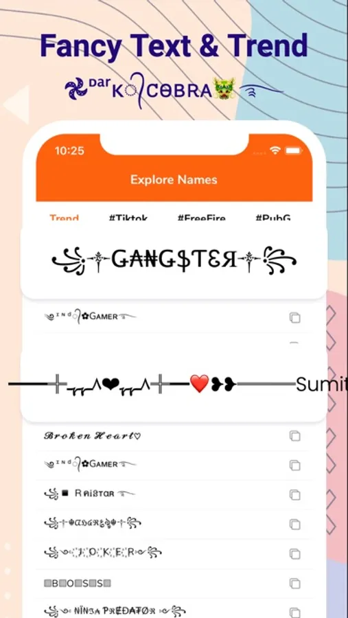 For gamers playing F Fire and Pub, the app's extensive library of special characters and fancy fonts make it easy to create cool and memorable in-game nicknames. Whether you want to stand out in the game or intimidate your opponents, the app has everything you need to create a killer nickname that represents your gaming style.