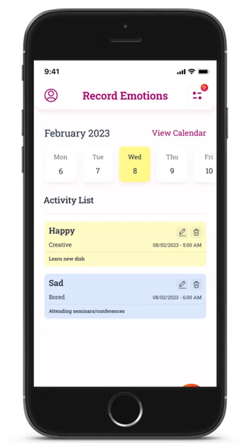 - Receive notifications of possible upcoming emotional states based on your past trends