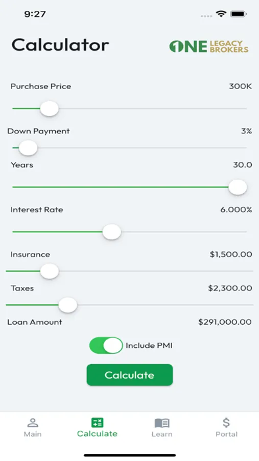 Mortgage Calculator and Application Portals for clients of One Legacy Brokers