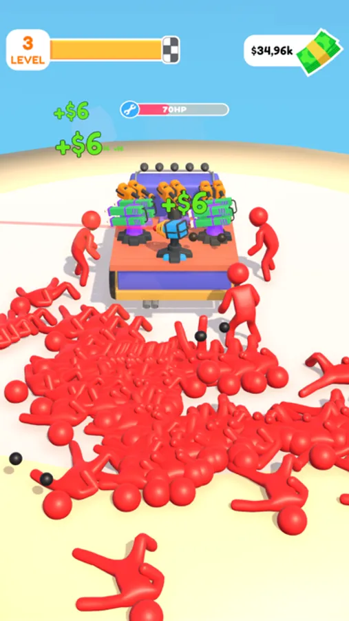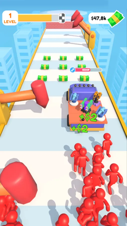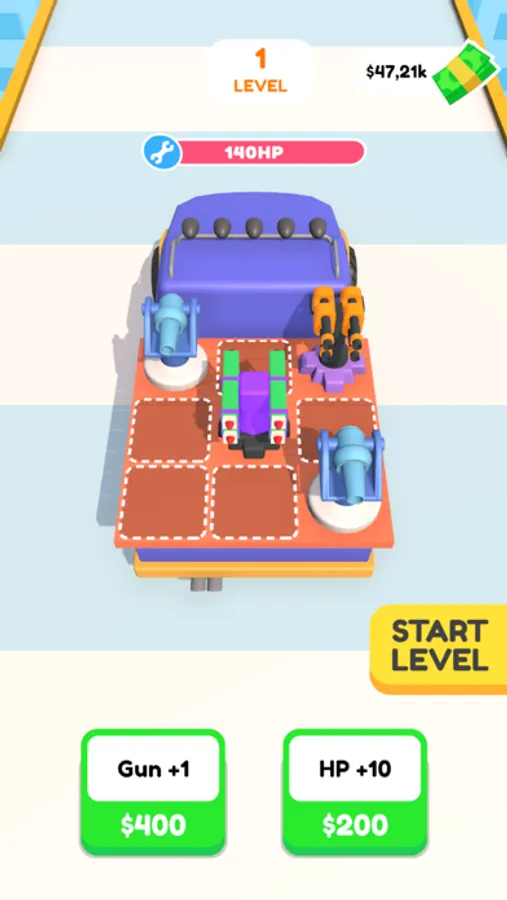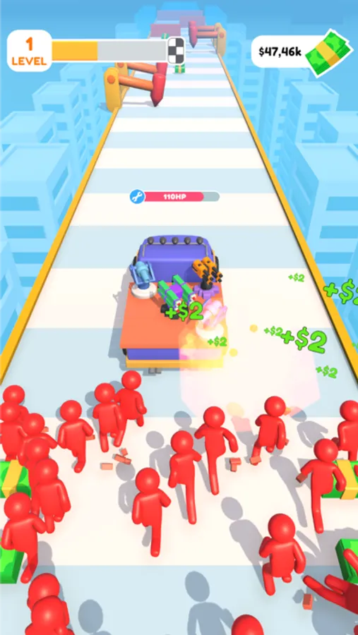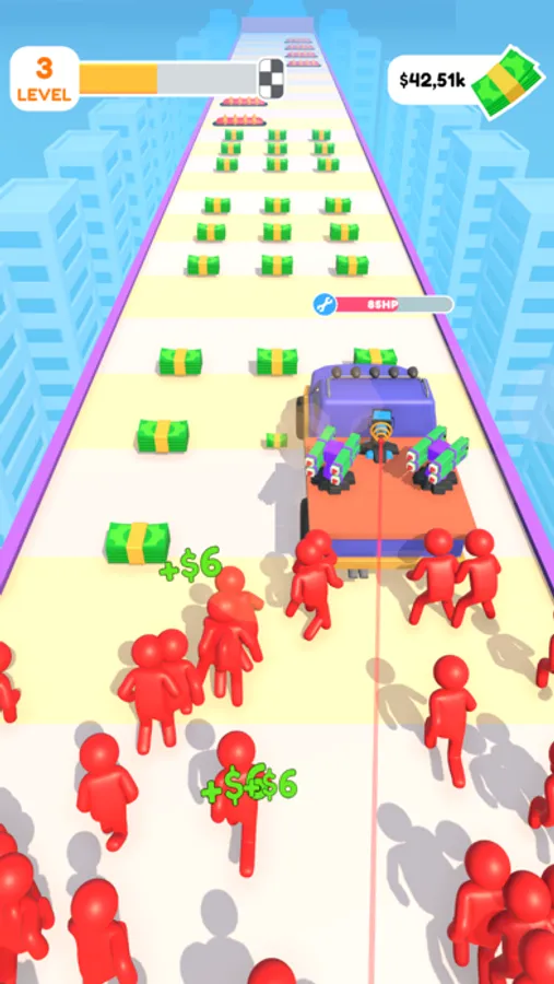 You drive a truck with mounted guns that you can merge to unlock new ones. Your goal is to survive and reach the finish line while avoiding enemy attacks and obstacles that can damage your truck. Can you make it to the end and become the ultimate Defence Runner?
