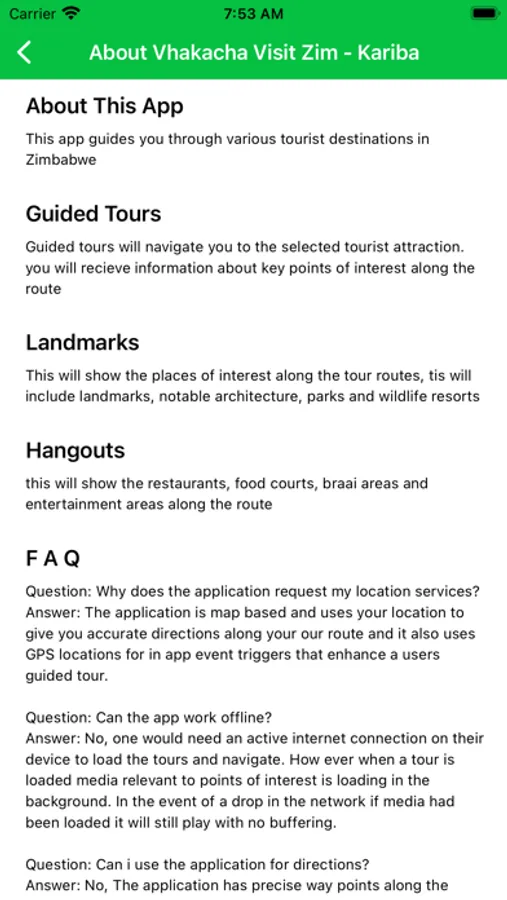 Come Explore Zimbabwe! Vhakacha Visit Zimbabwe is a virtual tour guide app of Zimbabwe’s most fascinating and exciting tourist points of interest. The app uses the GPS location on the tourist’s phone to guide them through a pre-determined route to the point of interest. While they travel, tourists are educated and entertained as the app provides them with historical facts about Zimbabwe, its wars, agriculture, people, music, etc. The Vhakacha Visit Zimbabwe app allows tourists to plan their visit to Zimbabwe well in advance and gives them information on where they can find lodging, food, bathrooms, and other important travel provisions while they navigate through the beauty of Zimbabwe.
