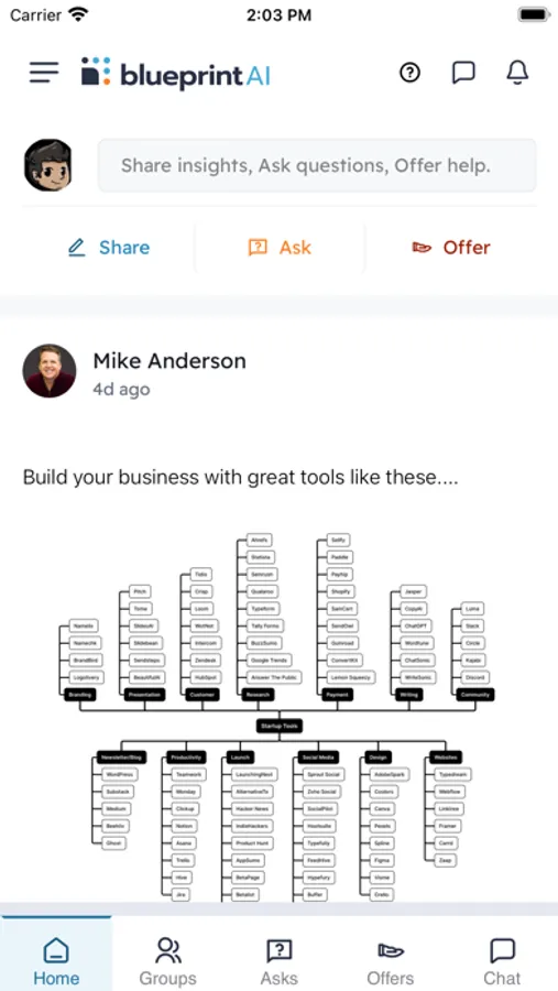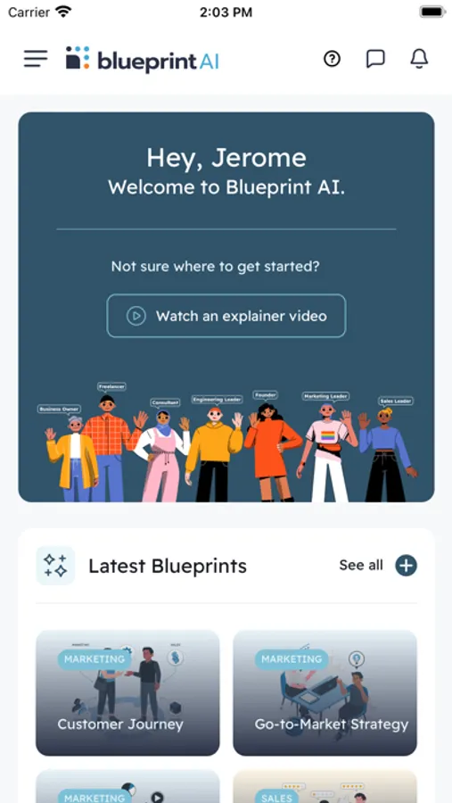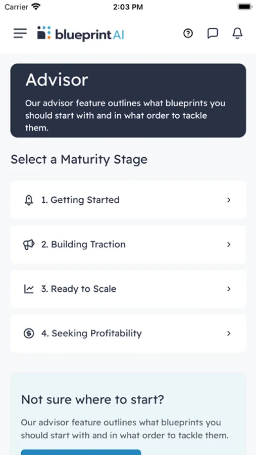 Blueprint empowers entrepreneurs and businesses by providing actionable blueprints, AI-powered recommendations, and a data-driven community.