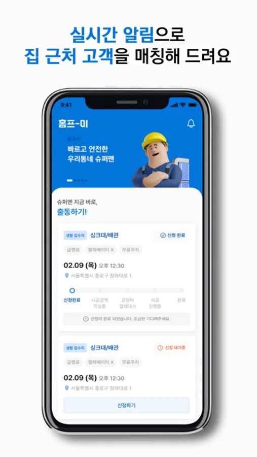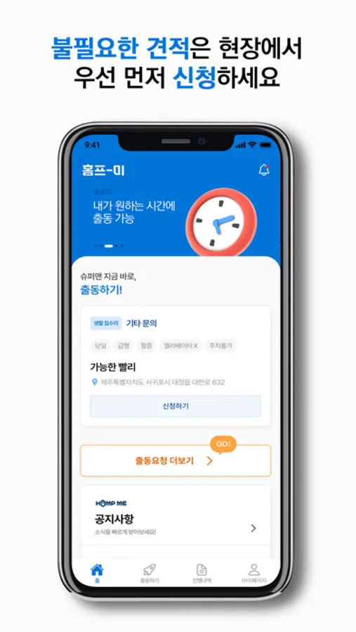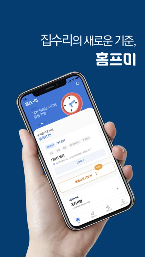 - 홈프미는 고객의 출동 문의를 실시간으로 알려드립니다. 알림이 울리면 확인해 주세요.