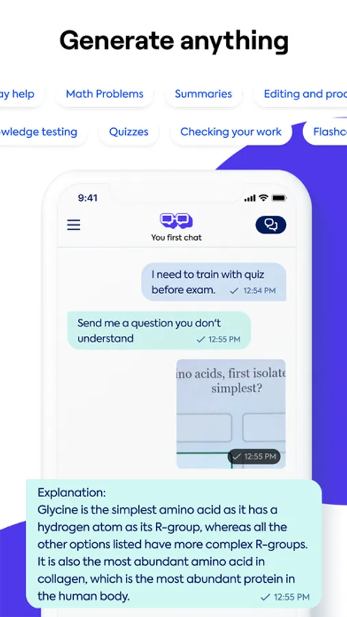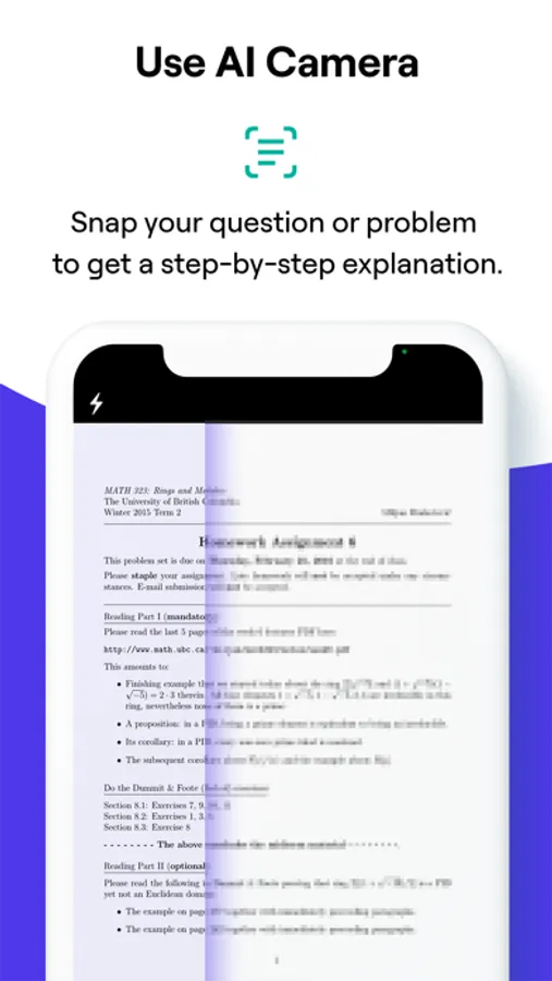 AI CAMERA: Snap a picture of any study question to get a step-by-step explanation and learn a new topic in seconds.