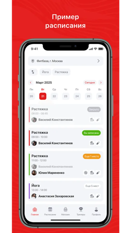 Посмотреть актуальное расписание тренировок;