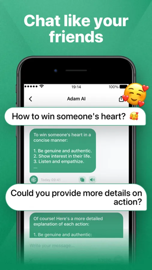 Chat like your friends, you ca have a conversation with AI, make you feel like you are chatting with a knowledgeable friend! You can chat about any topic to get creative answers.
