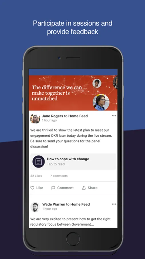 • Post, ""like"" and comment on content