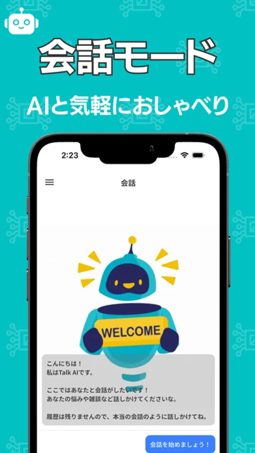 • There is a chat mode with history and a conversation mode where you can speak frankly